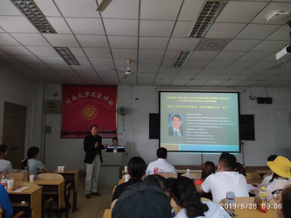 5月28日上午,全球健康社区基金会 (GCH)创始会长钱铭佳教授在综合楼209教室作了题为“Creativity, Innovation and Sustainability: Global ‘Changes’ in Physical Education and Health”的学术报告。雷竞技RAYBET最新版研究生本科生及部分教职工听取了报告,报告由张大超院长主持。