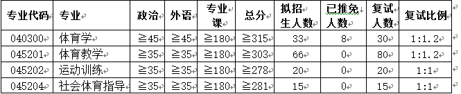 体育教育训练学、民族传统体育学面试内容包含专项技术,占面试总成绩的30%。以上两个专业考生在复试报到时选报1项专项技术,专项技术面试要求着运动装(乒、羽、网项目自带球拍)。