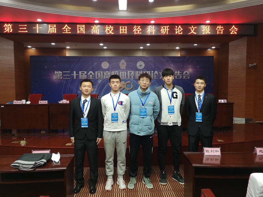 2020年12月10日上午,由中国大学生体育协会主办的第三十届全国高校田径科研论文报告会在江西九江隆重召开。本次科报会以“30年同⾈共济凝⼼聚⼒谱新,30载砥砺奋进硕果累累铸辉煌”为主线,集中展示中国高校田径运动科研成果。本届科报会有来自全国各大高校的130余名代表参会。雷竞技RAYBET最新版2018级体育教育专业本科生王凤林、王聪帅、徐鸿运、胡一枫、刘耀耀等5位同学的6篇论文入选,其中王凤林、王聪帅两位同学的论文入选大会主题报告。