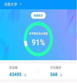 “校园阳光健康跑”活动开展以来,跑步成了河大校园的一道美丽风景线,校园里、操场上到处活跃着同学们朝气蓬勃的跑步身影。在为期11周的“校园阳光健康跑”活动中,男、女生分别要完成100公里和80公里的总有效里程。据统计本学期总共有18979名同学有效参与,累计跑步次数409361次,累计跑步里程达1537651公里,学期目标达成率高达91%。“校园阳光健康跑”在我校的开展,真正地促进了同学们积极主动参与到全民健身活动中来,帮助学生在体育锻炼中享受乐趣、增强体质、健全人格、锤炼意志。